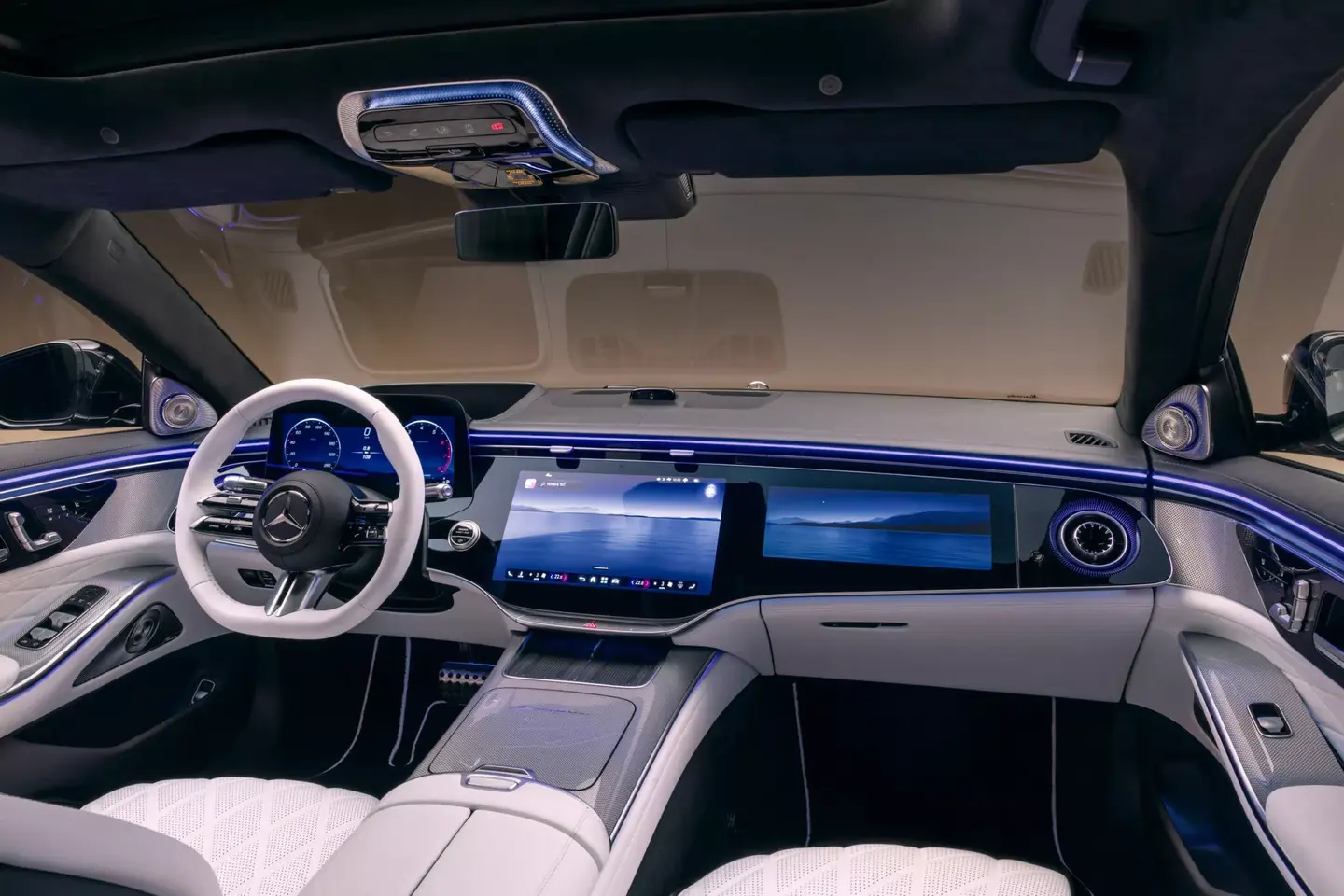 Takapenkkiläisillekin on entistä isommat tietoviihdejärjestelmän ruudut, joiden koko on 13,1 tuumaa. Niiden kamerat toimivat Teams-palavereissakin, ja autoon saa jopa lämmitettävät turvavyöt niin eteen kuin taakse. Burmesterin 3D surround -äänentoistojärjestelmä kuuluu vakiovarusteisiin, ja lisävarustelistalta voi poimia jopa 39 kaiuttimella varustetun 4D-surround-järjestelmän.