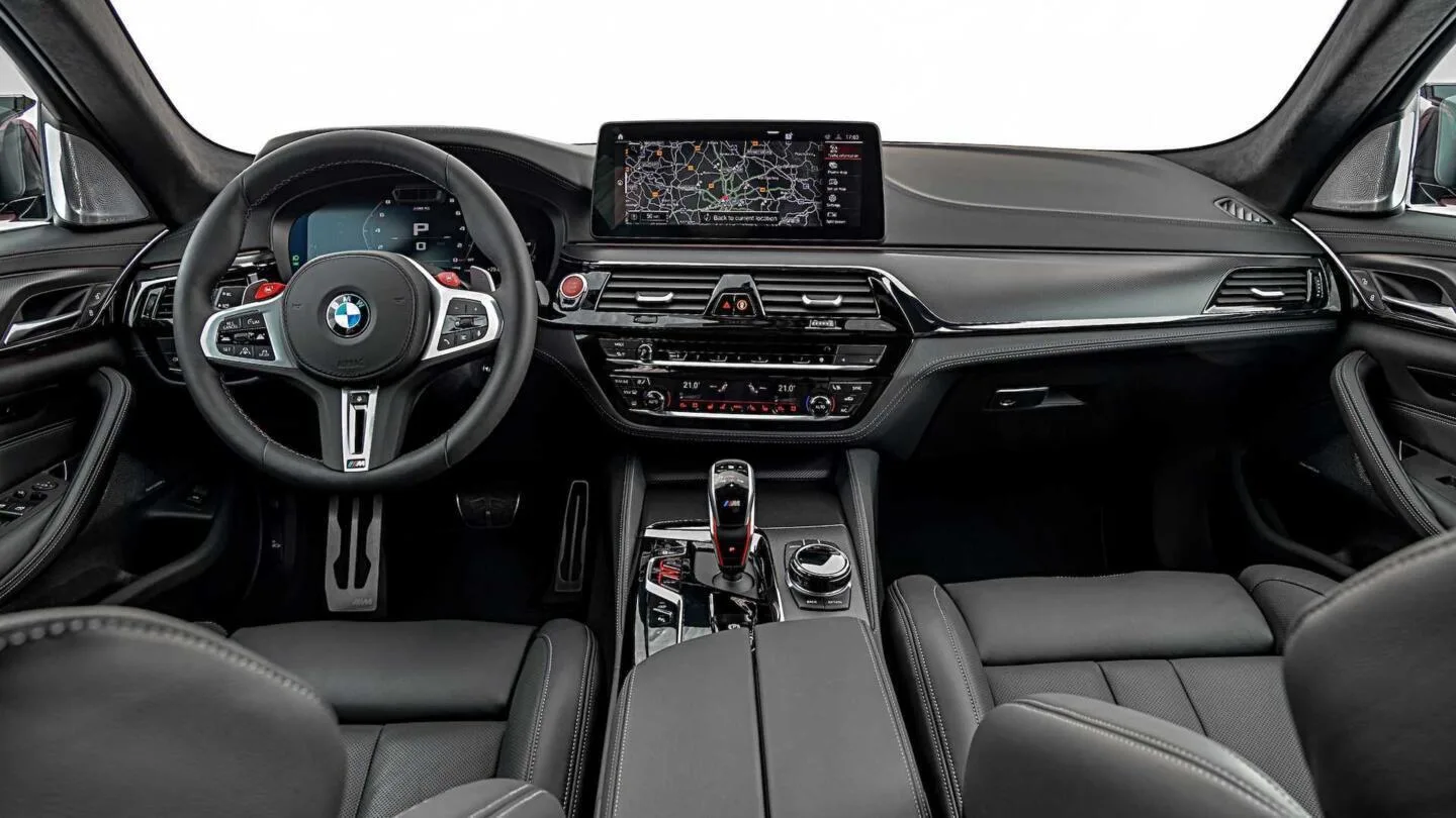 Sisusta on pääpiirteittäin ennallaan, mutta tietoviihdejärjestelmän ruutu on nyt 12,3-tuumainen. Systeemi on yhteensopiva Android Auton kanssa, ja navigaattori on pilvipohjainen. Lisäksi verhoilu on kokenut pieniä muutoksia, ja keskikonsolista löytyy kaksi uutta nappia auton säädöille ja M-moodille. Moottoriin ei sen sijaan ole koskettu, eli ”perusmallissa” on edelleen 600 hepan tehon ja 750 newtonin maksimiväännön tuottava 4,4-litrainen tuplaturbokasi. Nelivedon voi tuttuun tapaan kytkeä pois kunnon sladittelun mahdollistamiseksi, ja satasen nopeus on taulussa 3,4 sekunnissa.