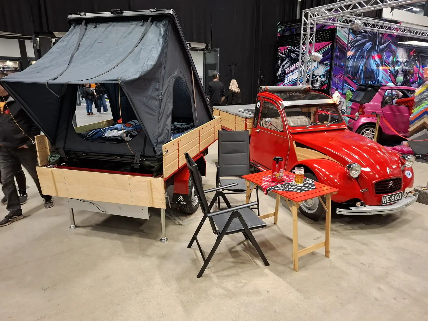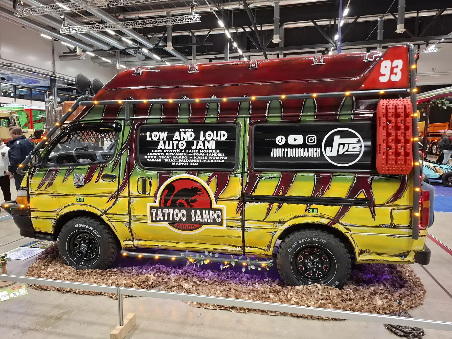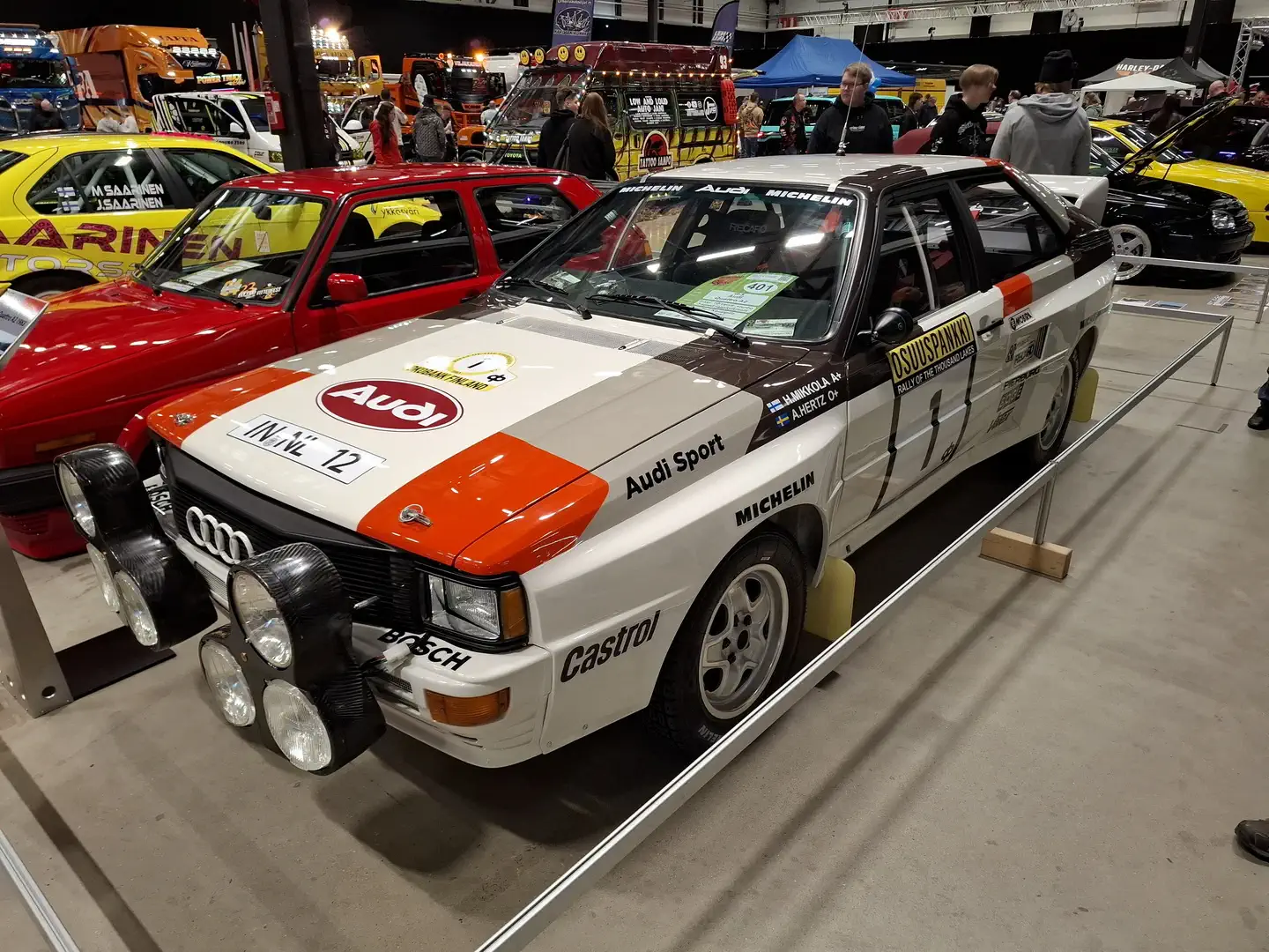 Pienempi halli oli puolestaan varattu pääosin tuning-kalustolle, drifting-autoille ja erittäin näyttäville rekan nupeille, jotka edustivat niin Amerikkaa kuin Eurooppaakin. Kakkoshallin puolelta löytyi myös koko näyttelyn sykähdyttävin auto ainakin allekirjoittaneelle, eli aivan viimeisen päälle tehty ja virheettömästi viimeistelty replika Hannu Mikkolan B-ryhmän Audi Quattrosta miehen rallin maailmanmestaruusvuodelta 1983. Tässä kuvakoosteemme Tampereelta:
