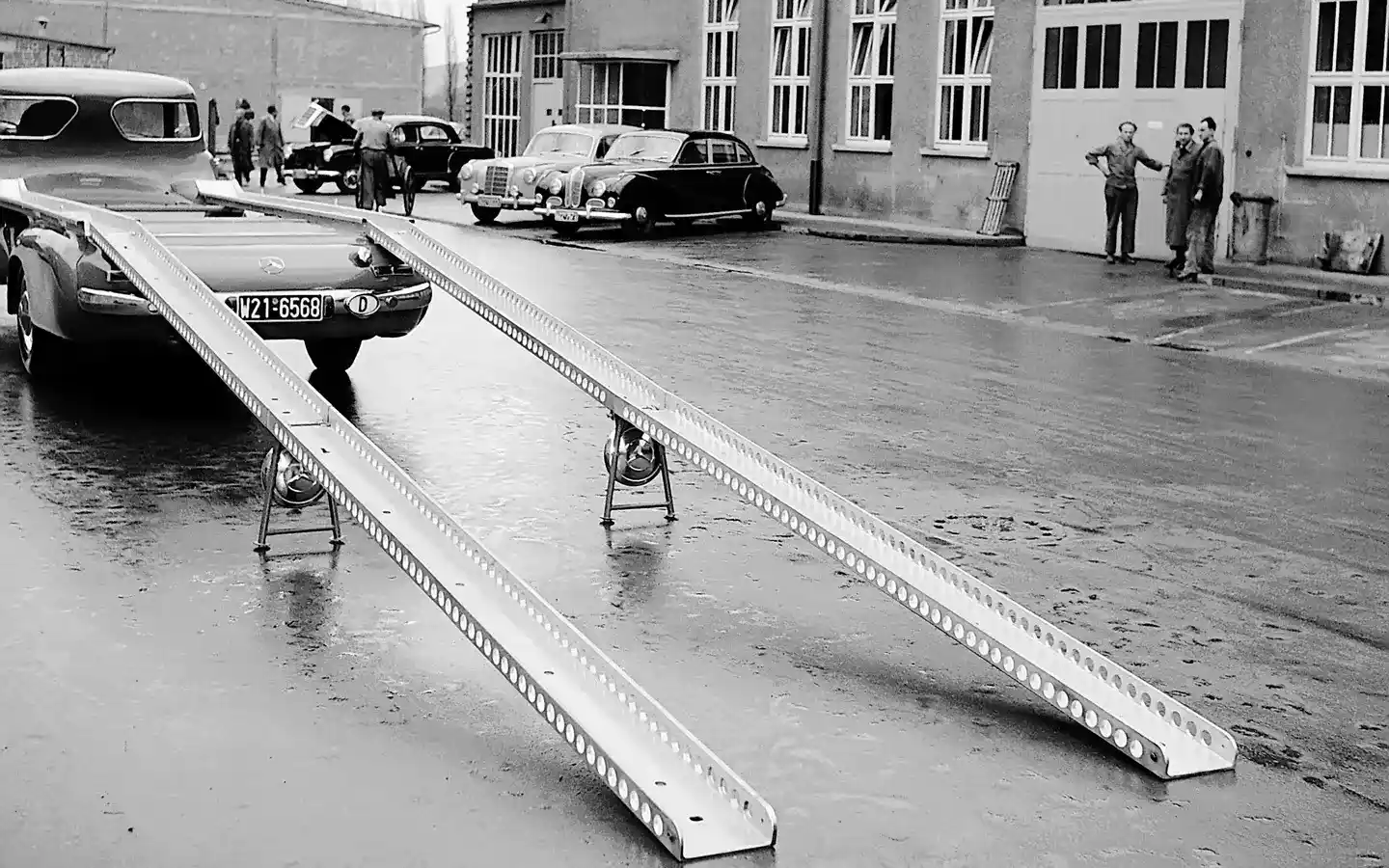 Renntransporterissa ei käytetty mitään mekaanisia nostoapuja, joten kuskin ja apumiehen piti laskea käsin alas lavaosan päälle kiinnitetyt rampit. Joissakin kisoissa ilman omia varikkoalueita ne toimivat myös kilpurien improvisoituina huoltoramppeina, kuten vuoden 1955 Targa Floriossa Sisiliassa. Tuon kisan voitti Stirling Moss 300 SLR:llä, ja spoilerityyppisellä ilmajarrulla varustettu 300 SLR nähtiin myös esimerkiksi Le Mansissa sekä Ruotsin Grand Prix’ssä.