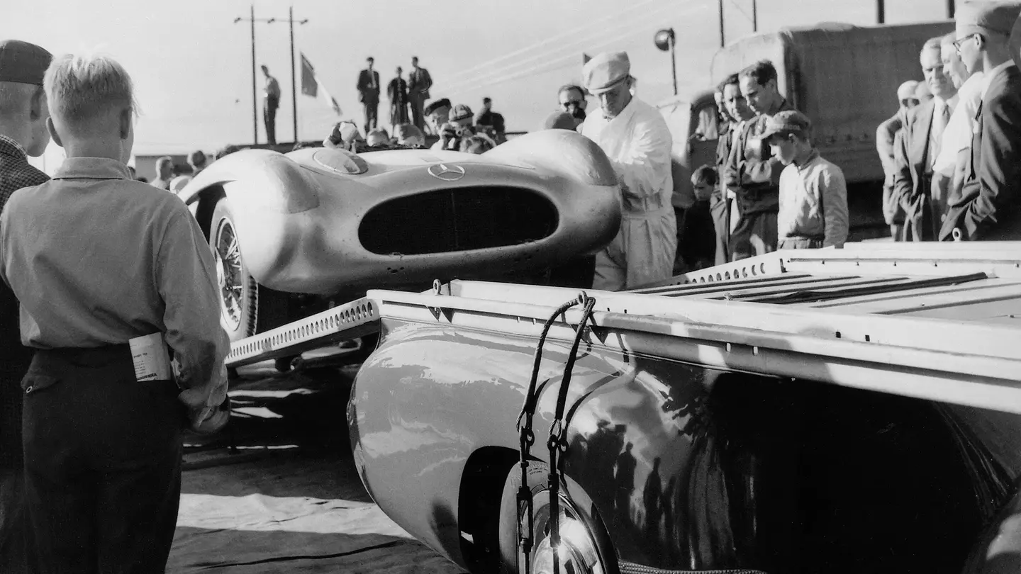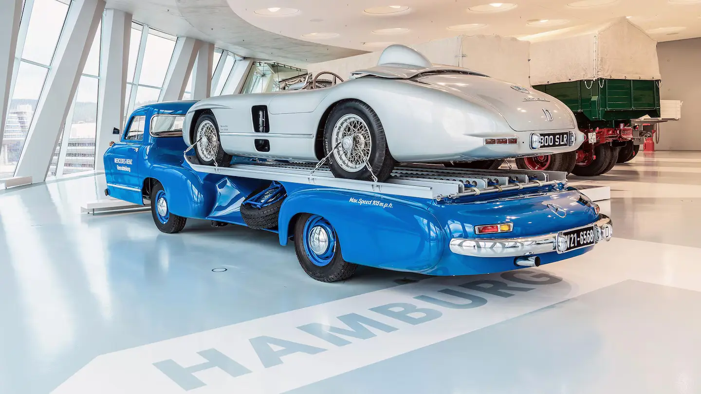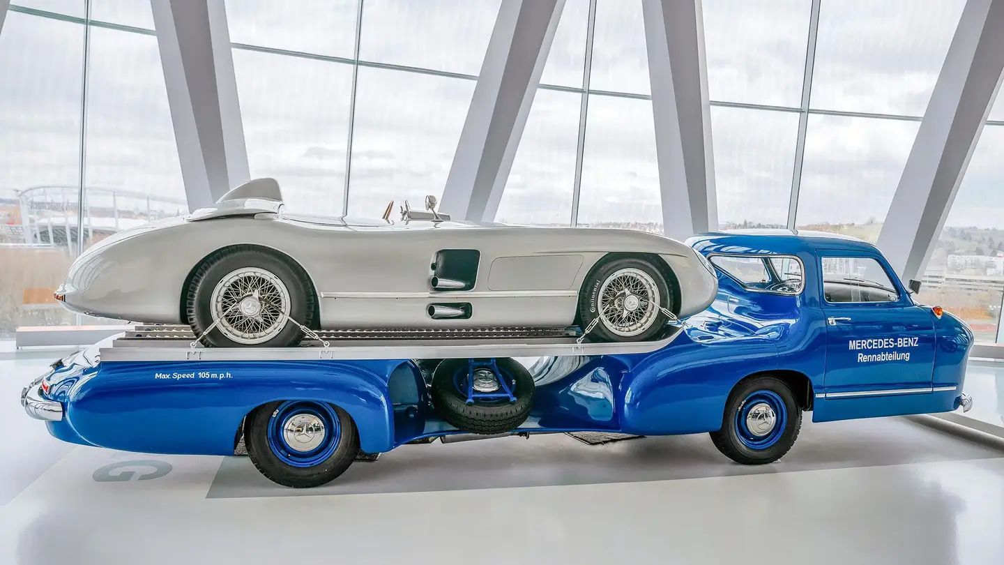 Mercedes-Benz toimi 1950-luvulla erittäin menestyksekkäästi sekä urheiluautojen ratasarjoissa että F1:n puolella, kunnes vuoden 1955 Le Mansin 24 tunnin kilpailussa tapahtunut katastrofaalinen onnettomuus sai stuttgartilaiset vetäytymään kilparadoilta vuosikymmeniksi. Edellisvuonna kaikki oli kuitenkin vielä hyvin, ja tuolloin valmistui myös yksi autohistorian erikoisimmista kuljetusautoista.