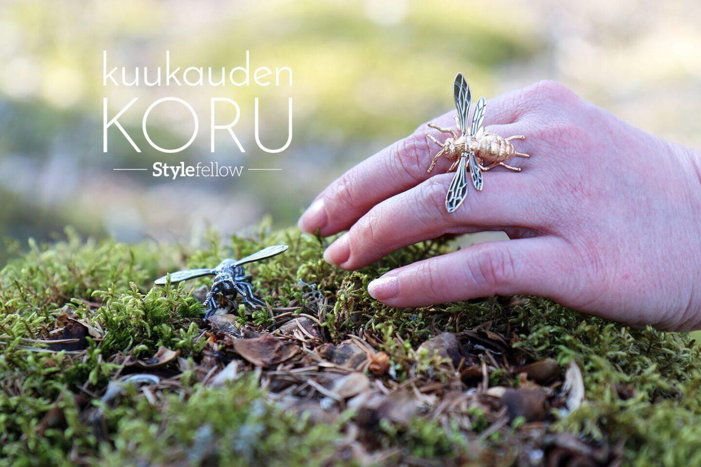 Vuoden Kaunein Sormus -kilpailuun osallistuvan Päivi Hakkaraisen Paravespula vulgaris -sormus on tuttu lukijoillemme Kuukauden koru -artikkelistamme huhtikuulta. Arthropoda -sarjan sormus kiinnitti huomiomme Vuoden koru -ehdokkaaksi persoonallisena katseenvangitsijana. Sormus jättää haukkomaan henkeä ihailevien huudahdusten saattelemana.