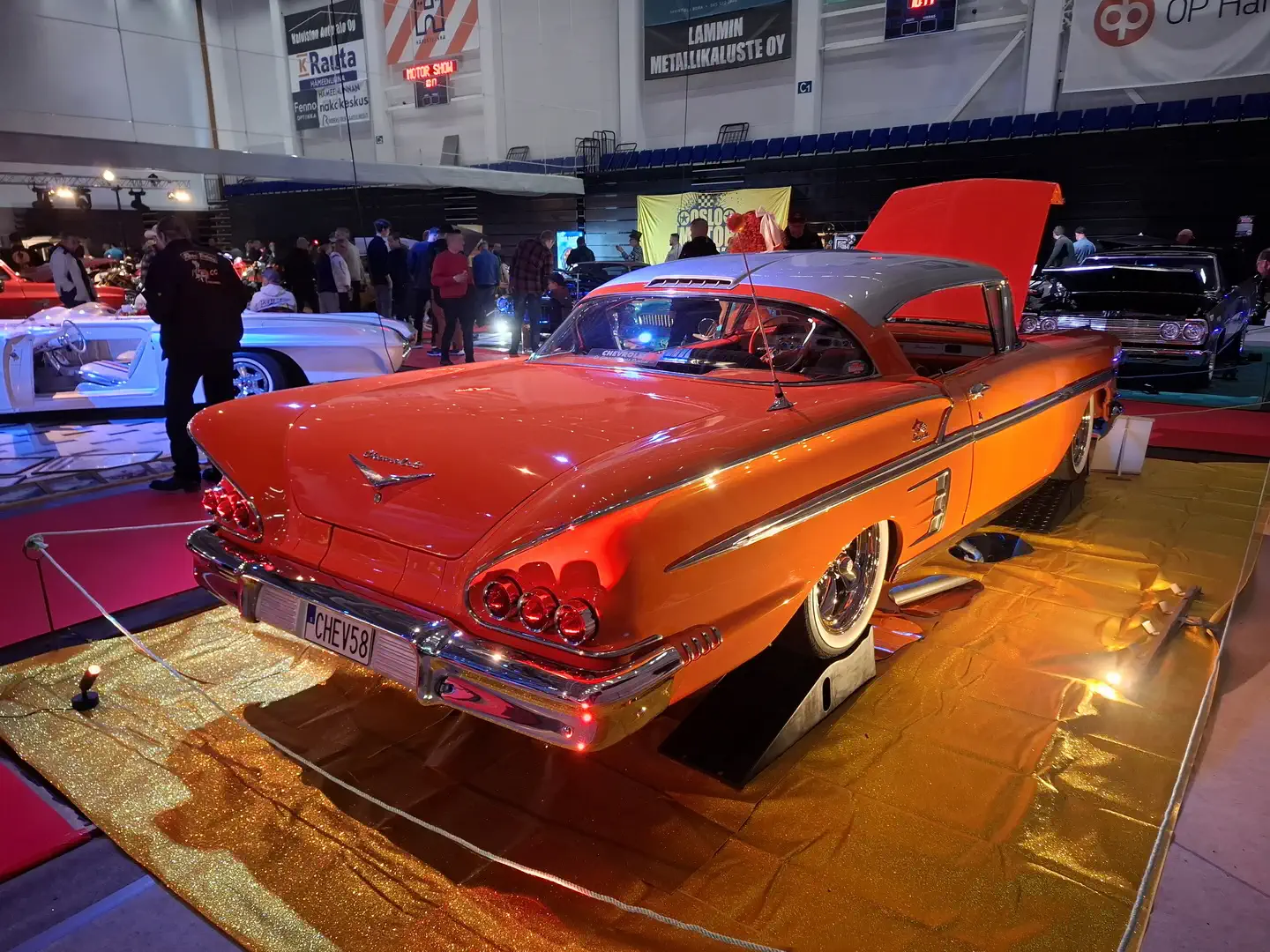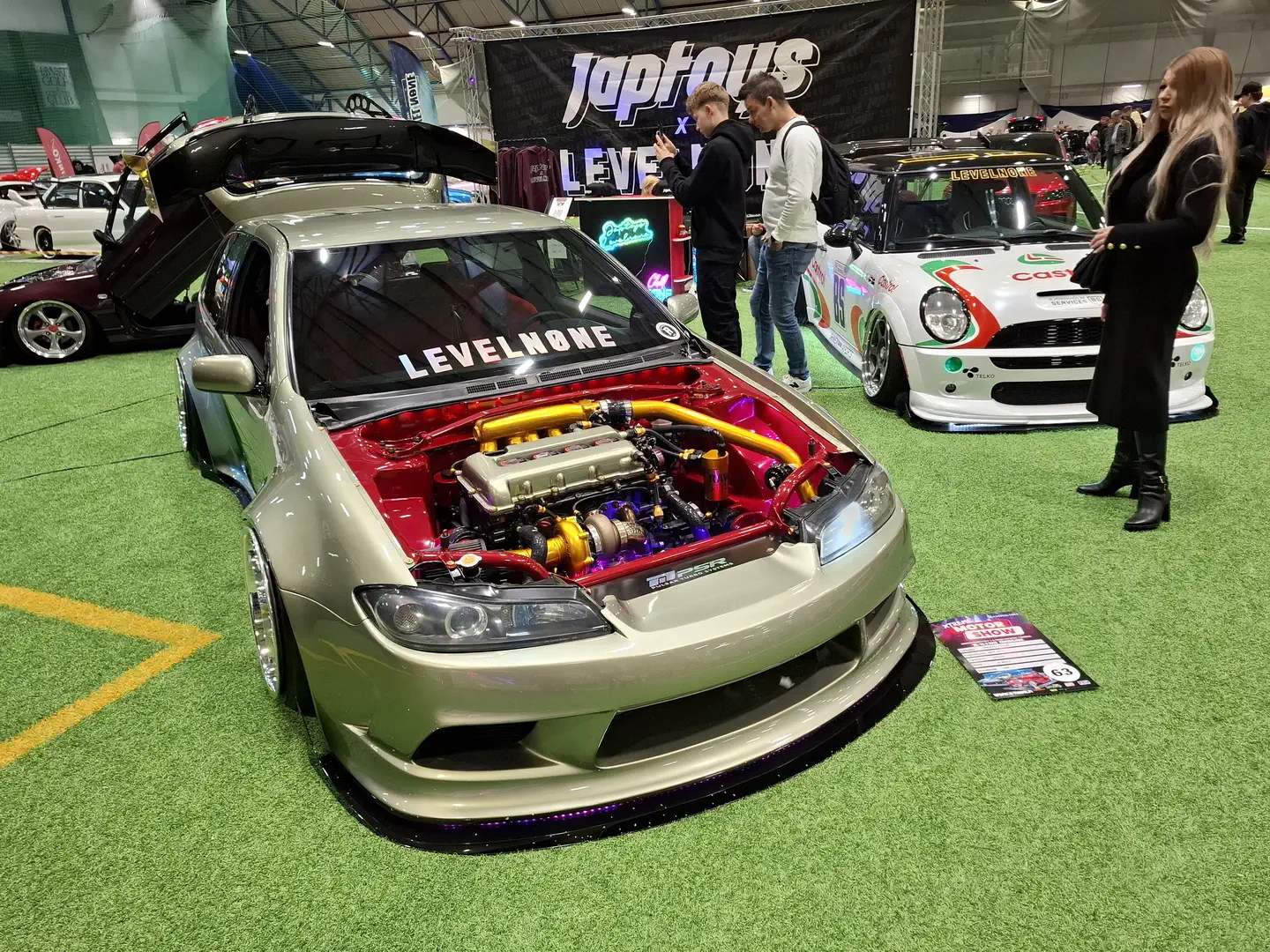 Niistä pienempään oli koottu esiintymislavan ja muutaman myyntipaikan lisäksi jenkkiautoja, tuning- ja kisahenkeä edustaneita euro- ja japsiautoja sekä monia moottoripyöriä ja vaikkapa moottoroitu nojatuoli. Autojen taso oli tänäkin vuonna korkealuokkainen, mutta pieniä pyyhkeitä pitää antaa pienemmän hallin kompastusherkkien käytävämattojen lisäksi tilan valaistuksesta. Se oli nimittäin niin hämärä, että monen auton tarkempi tutkiminen tai kuvaaminen meni jo hankalaksi. Muutamien autojen kohdalla tilannetta kohensivat kirkkaat spottivalot, mutta hämyinen tunnelma ja autonäyttely on kävijöiden kannalta huono yhdistelmä.
